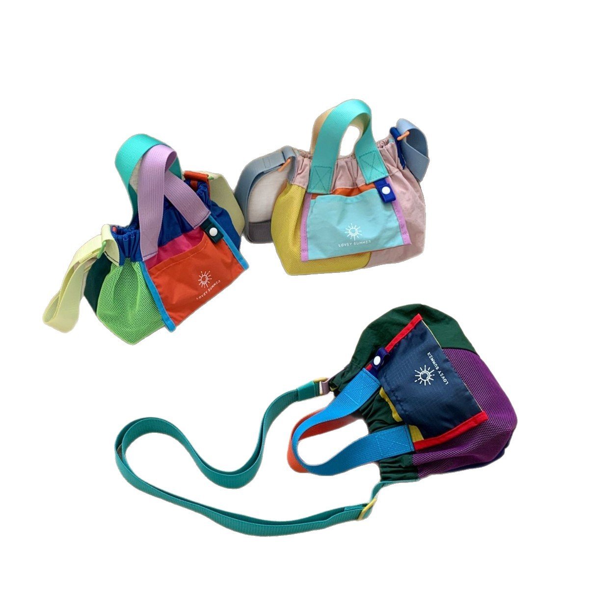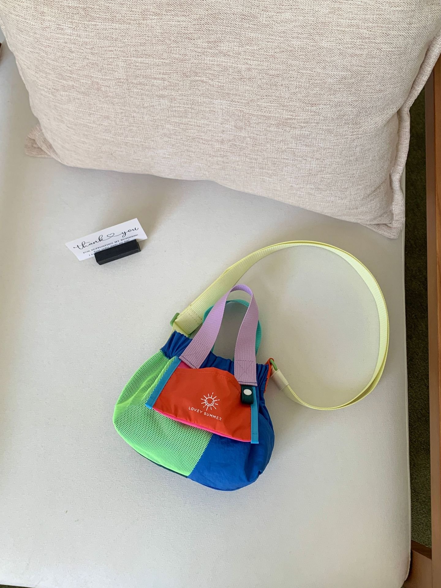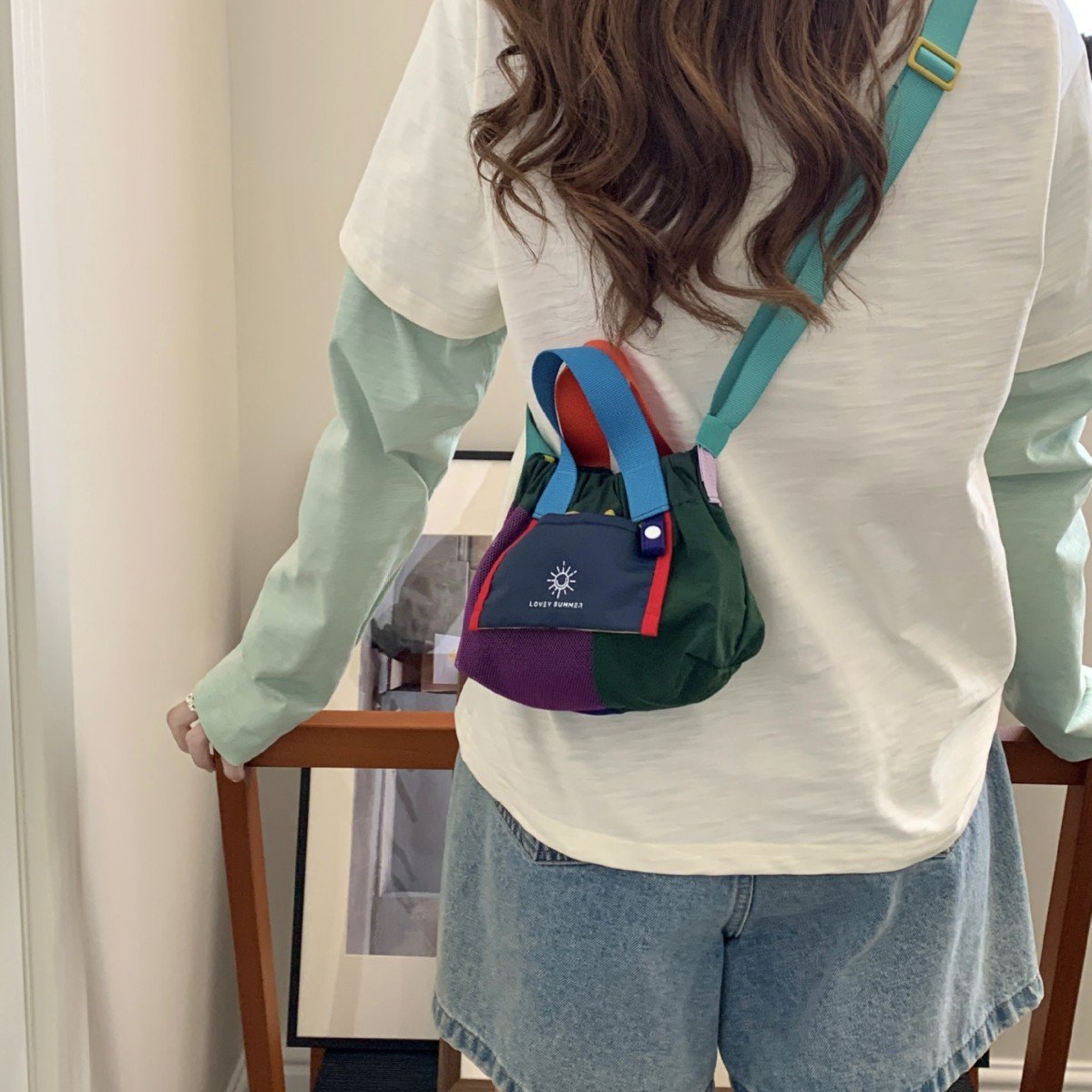 Color-blocked dopamine canvas tote shoulder bag