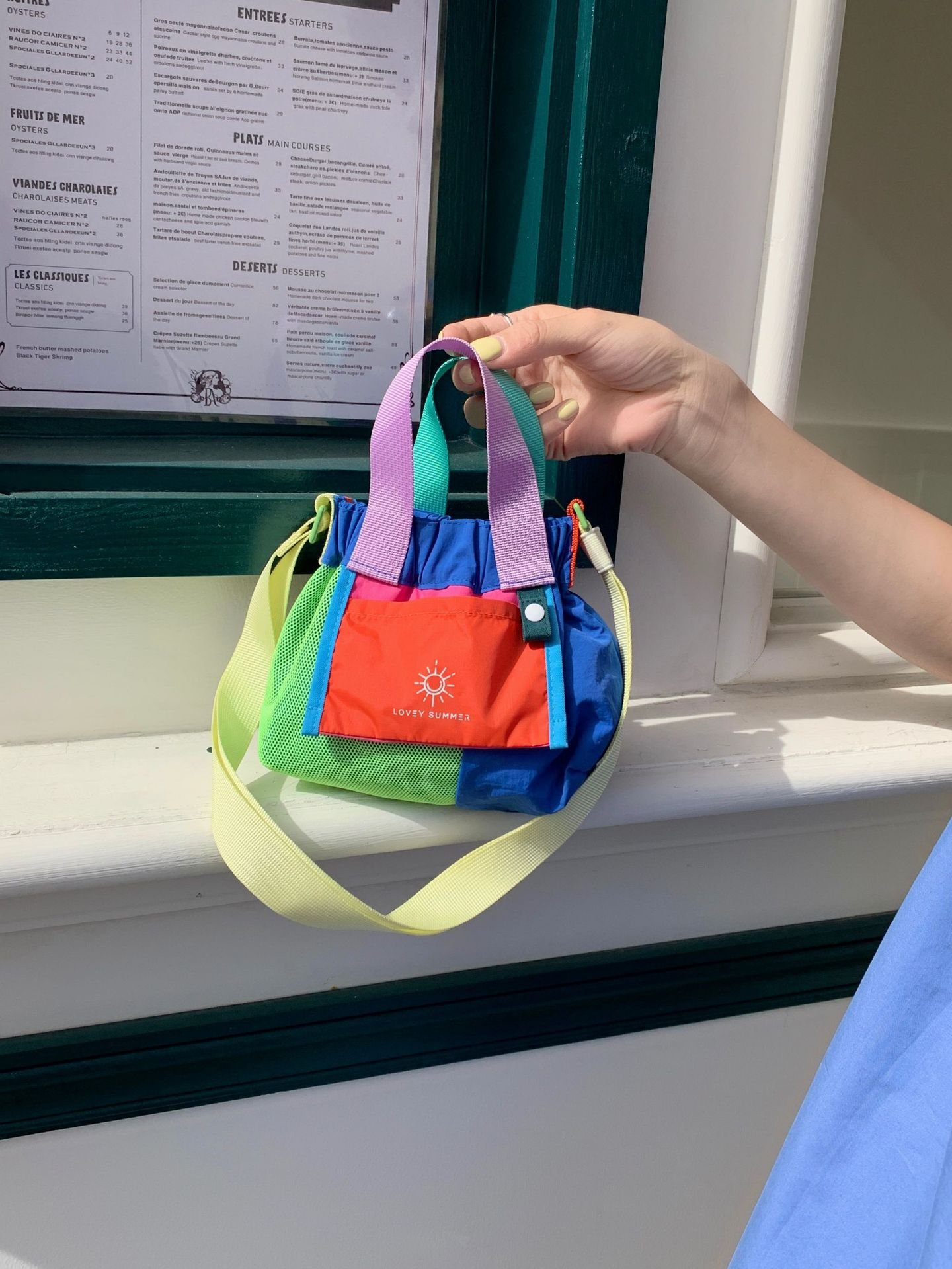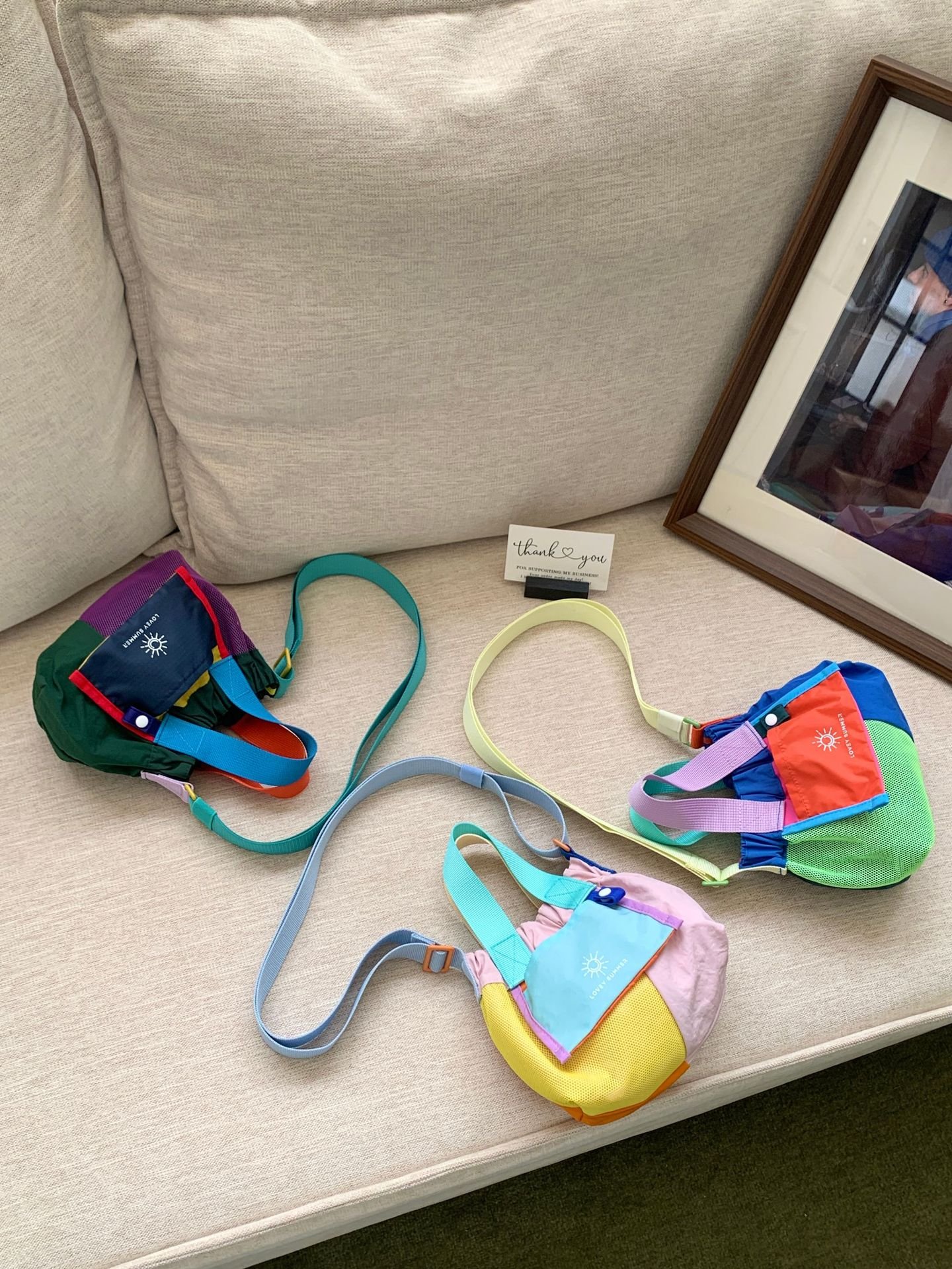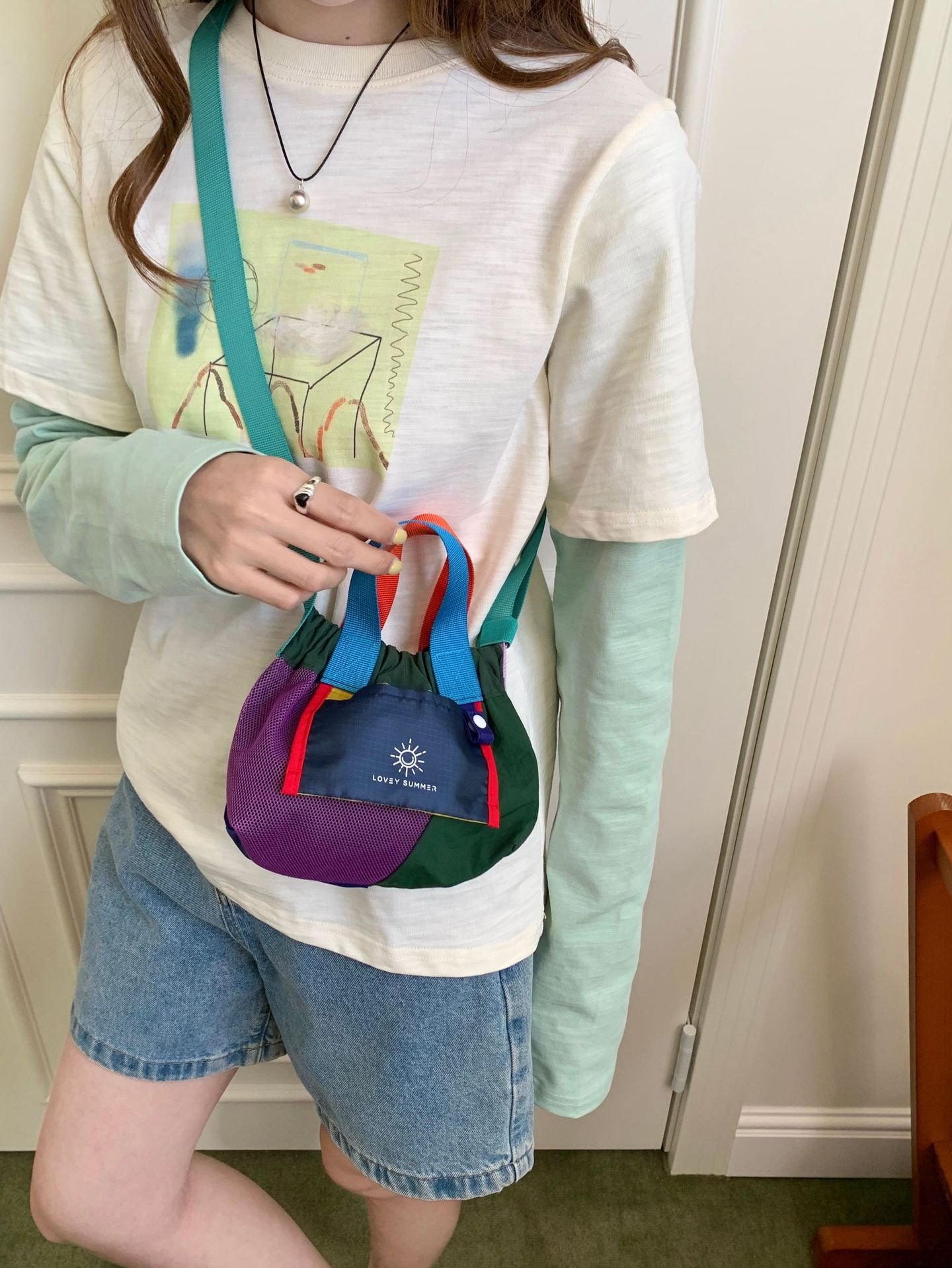Color-blocked dopamine canvas tote shoulder bag