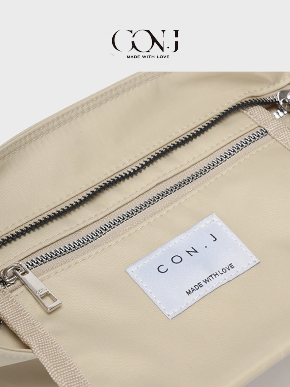 Compact zippered nylon phone bag with contrasting color design