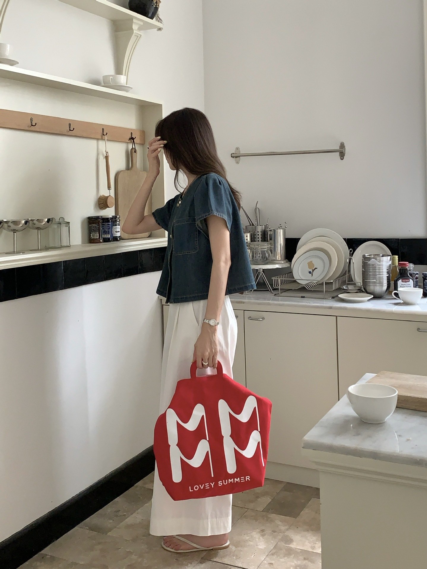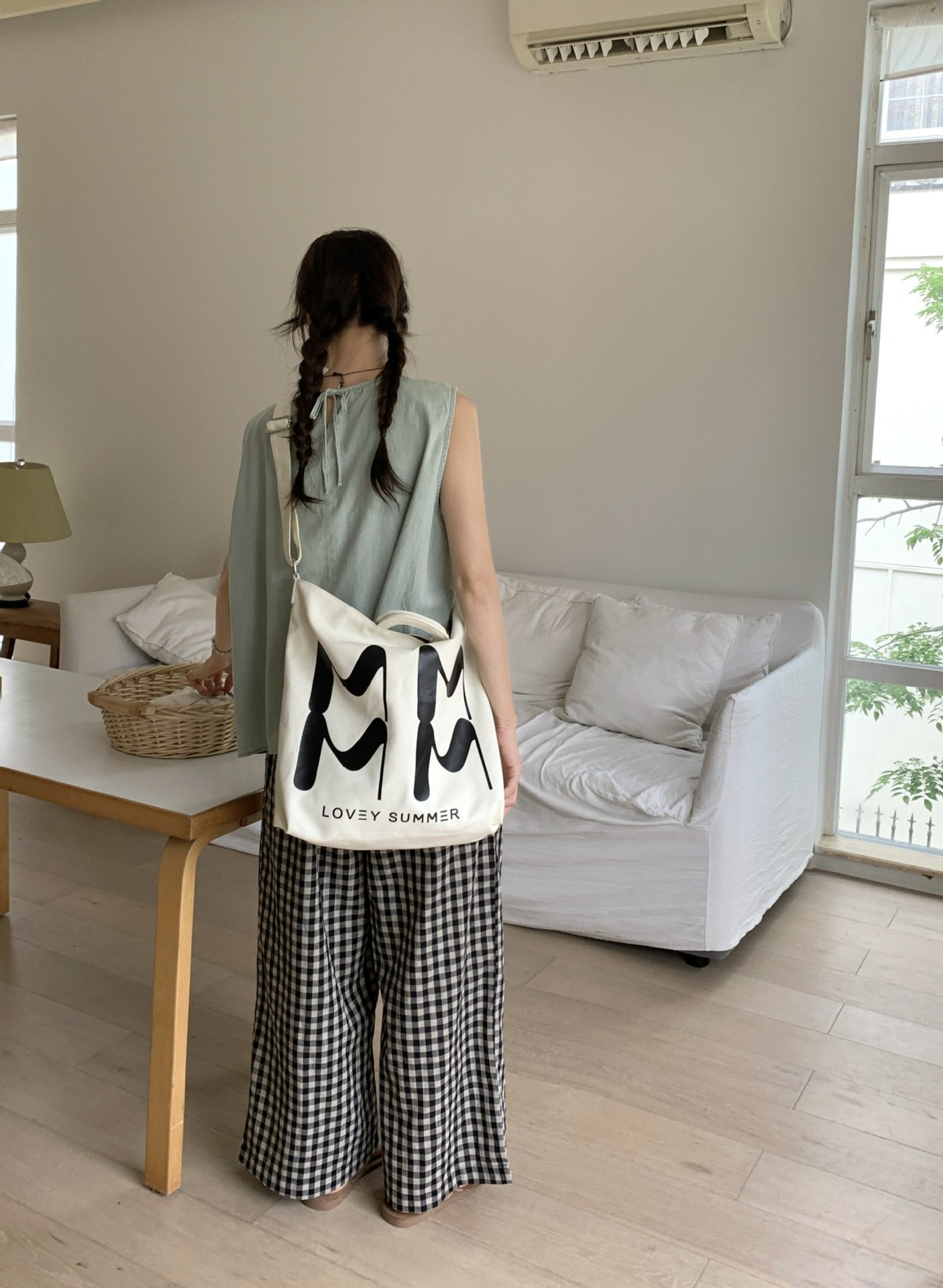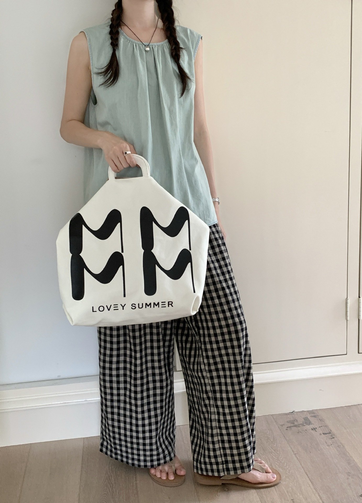 American double-bun plaid denim canvas bag versatile commuter tote bag can be used on both sides to contrast vintage colors