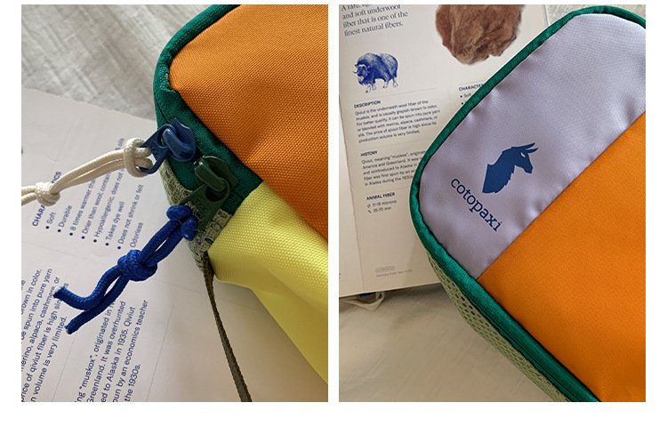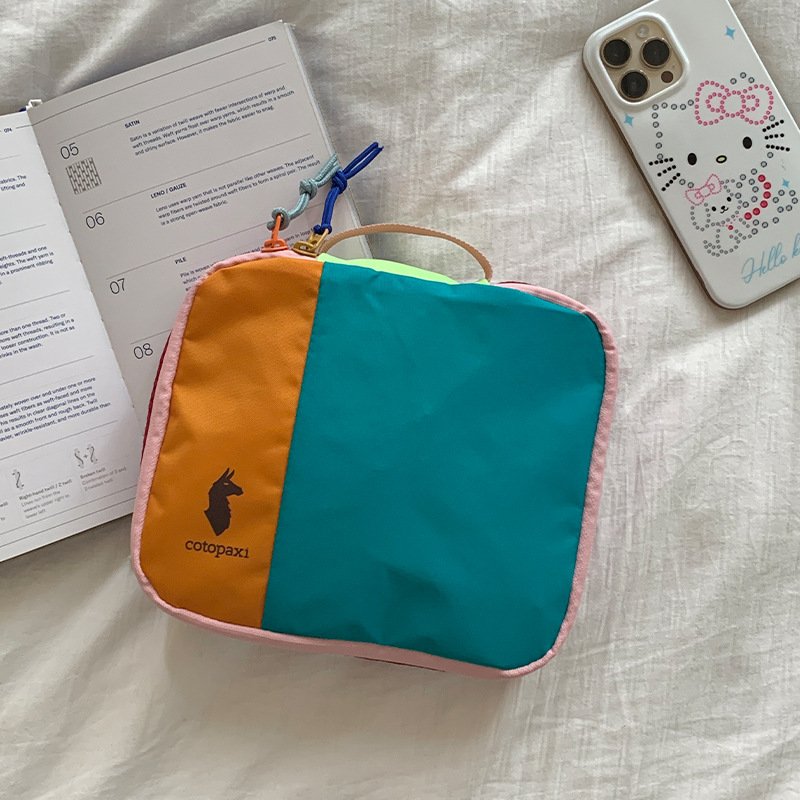 Color-blocked dopamine canvas tote shoulder bag