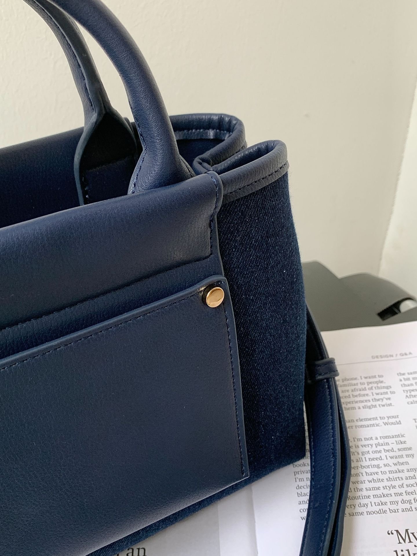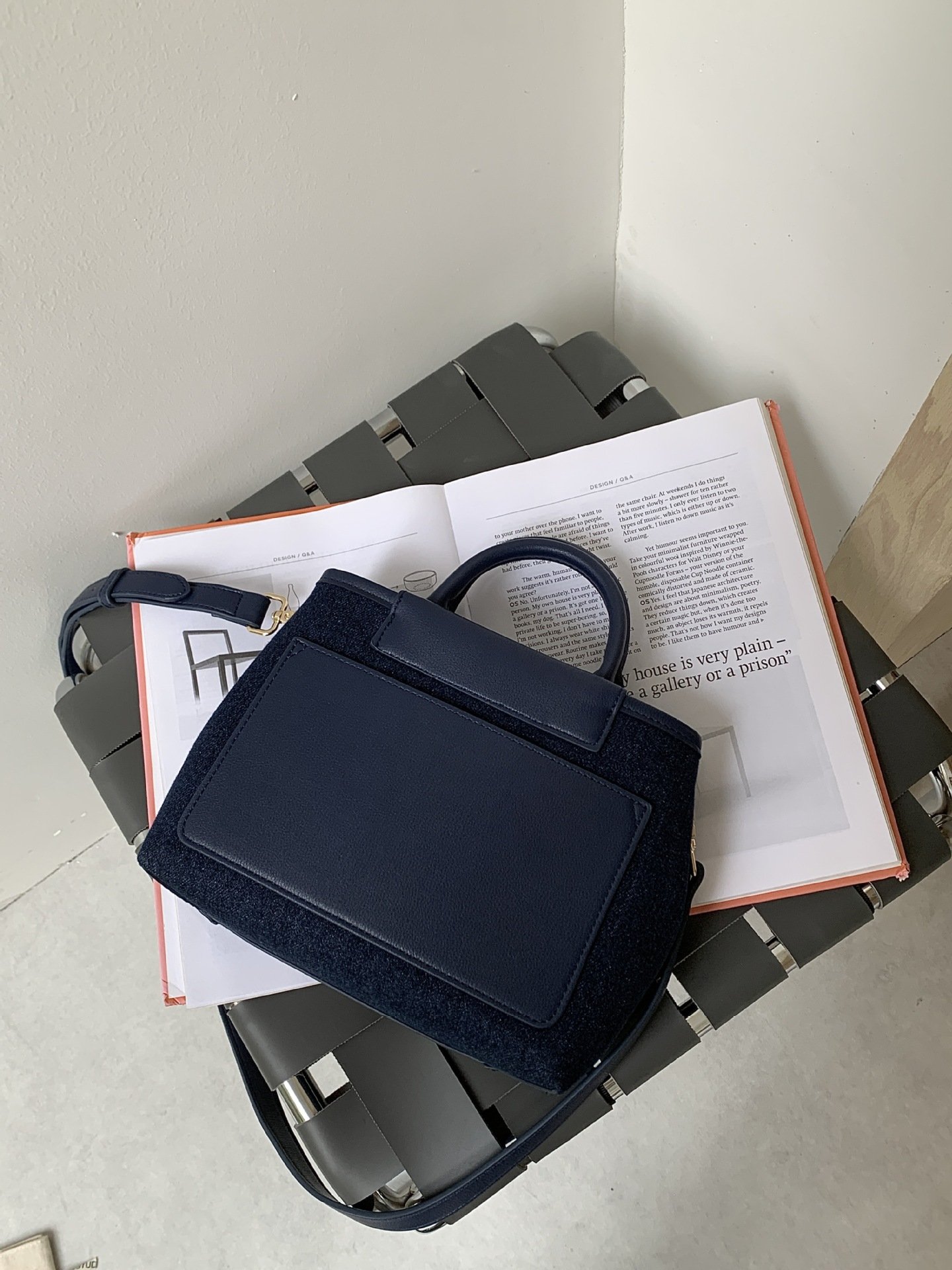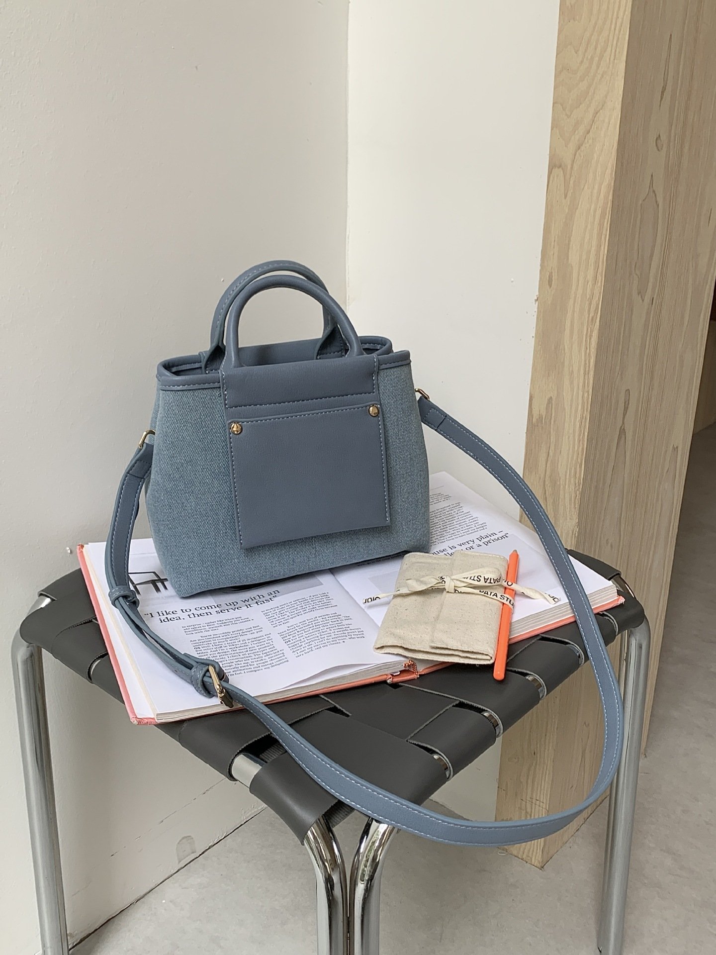 American double-bun plaid denim canvas bag versatile commuter tote bag can be used on both sides to contrast vintage colors