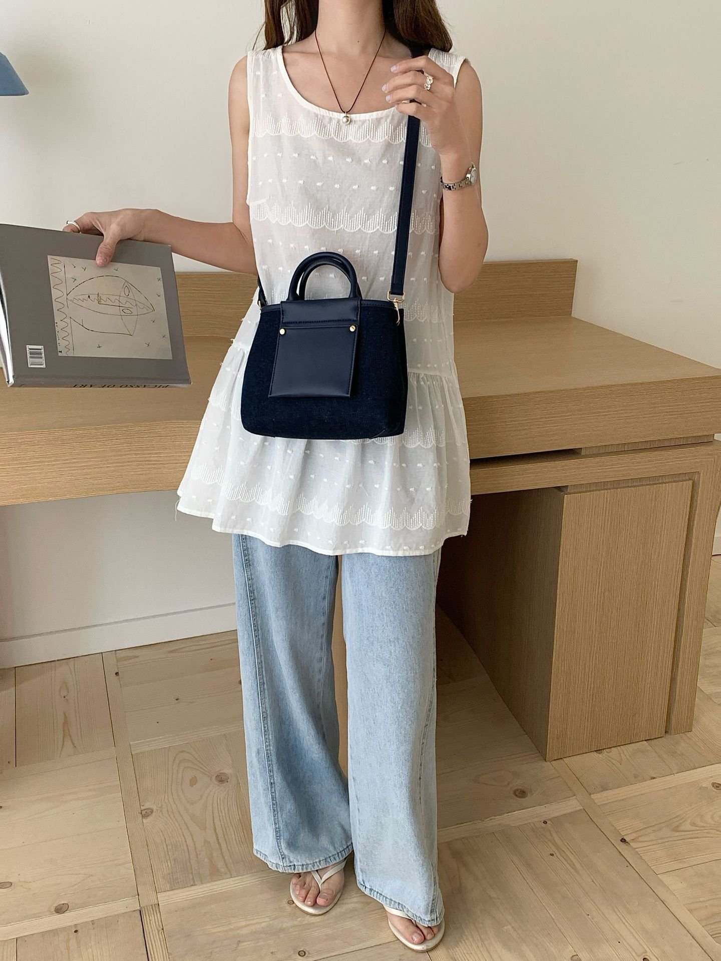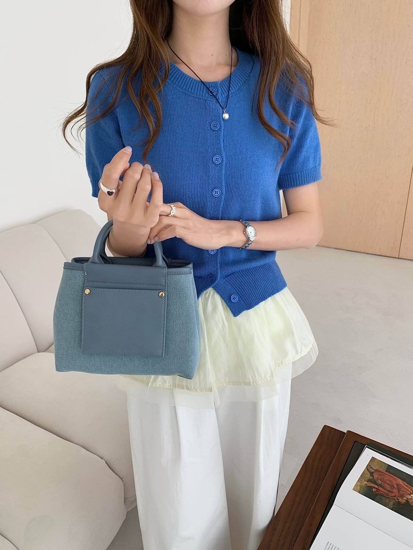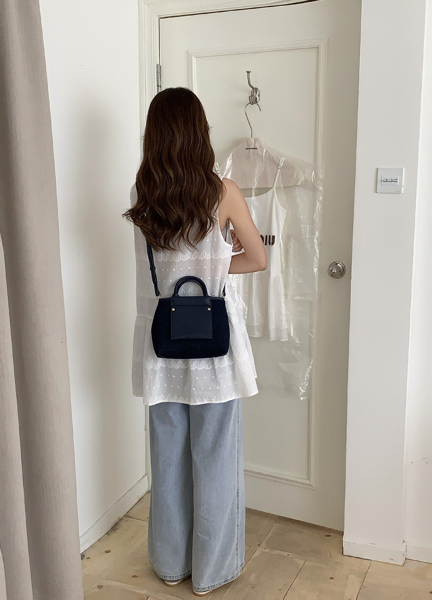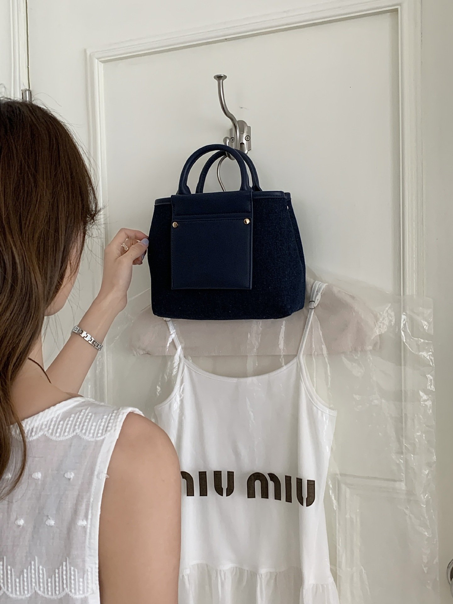 American double-bun plaid denim canvas bag versatile commuter tote bag can be used on both sides to contrast vintage colors