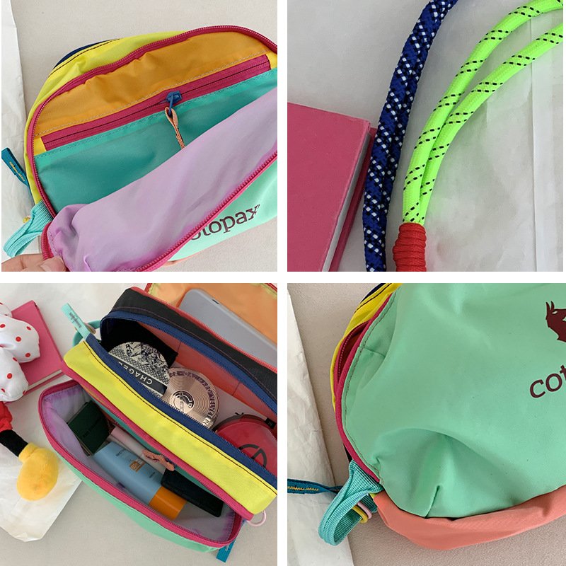 Color-blocked dopamine canvas tote shoulder bag